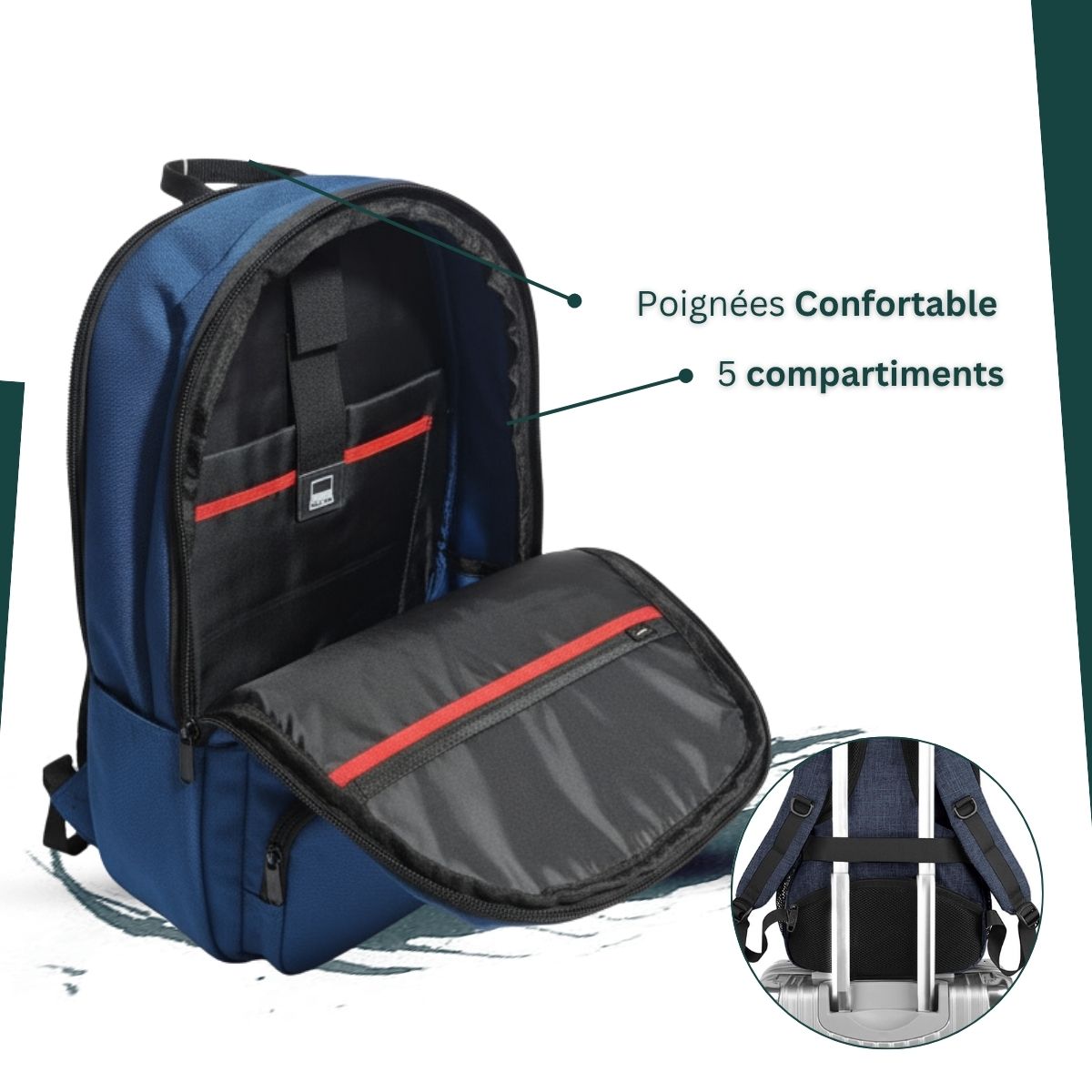• Grand Compartiment Principal : Espace dédié et sécurisé pour votre ordinateur portable.