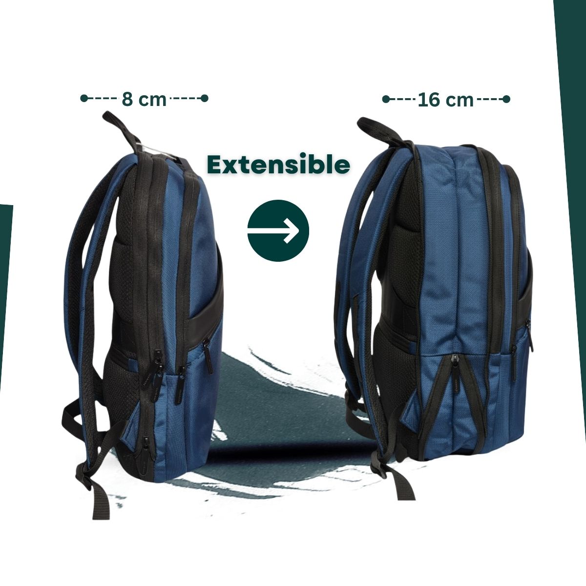 Sac à dos LM120 Extensible (8-16 cm). 5 compartiments, poche cachée antivol, dos ergonomique. Parfait pour travail, sport et voyage.