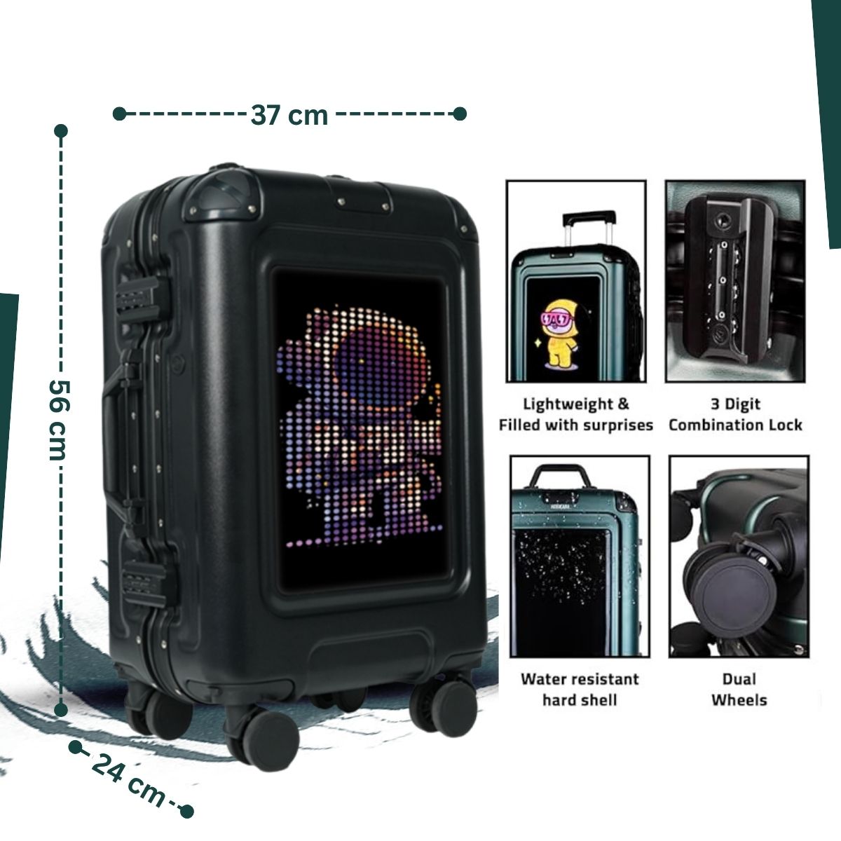 Valise Intelligente LM165 à Écran LED HD. Personnalisez vos messages/animations via App Bluetooth. Design étanche, poignée télescopique.